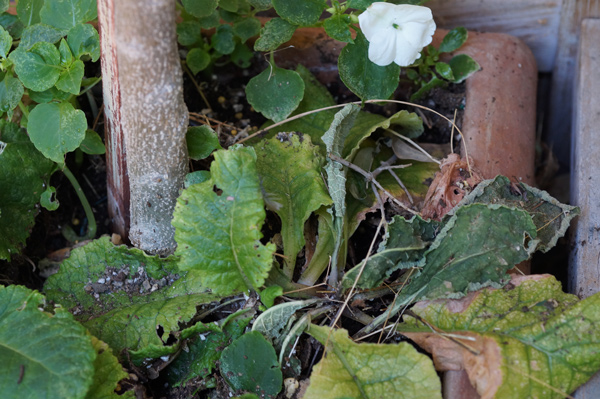 In mid-June, when we returned from our vacation, I noticed that there was dry grass and leaves in one of my topiary trees in our front entry. I figured it was probably our gardeners who blow the yard when they are finished and they blew some dead grass into this plant.